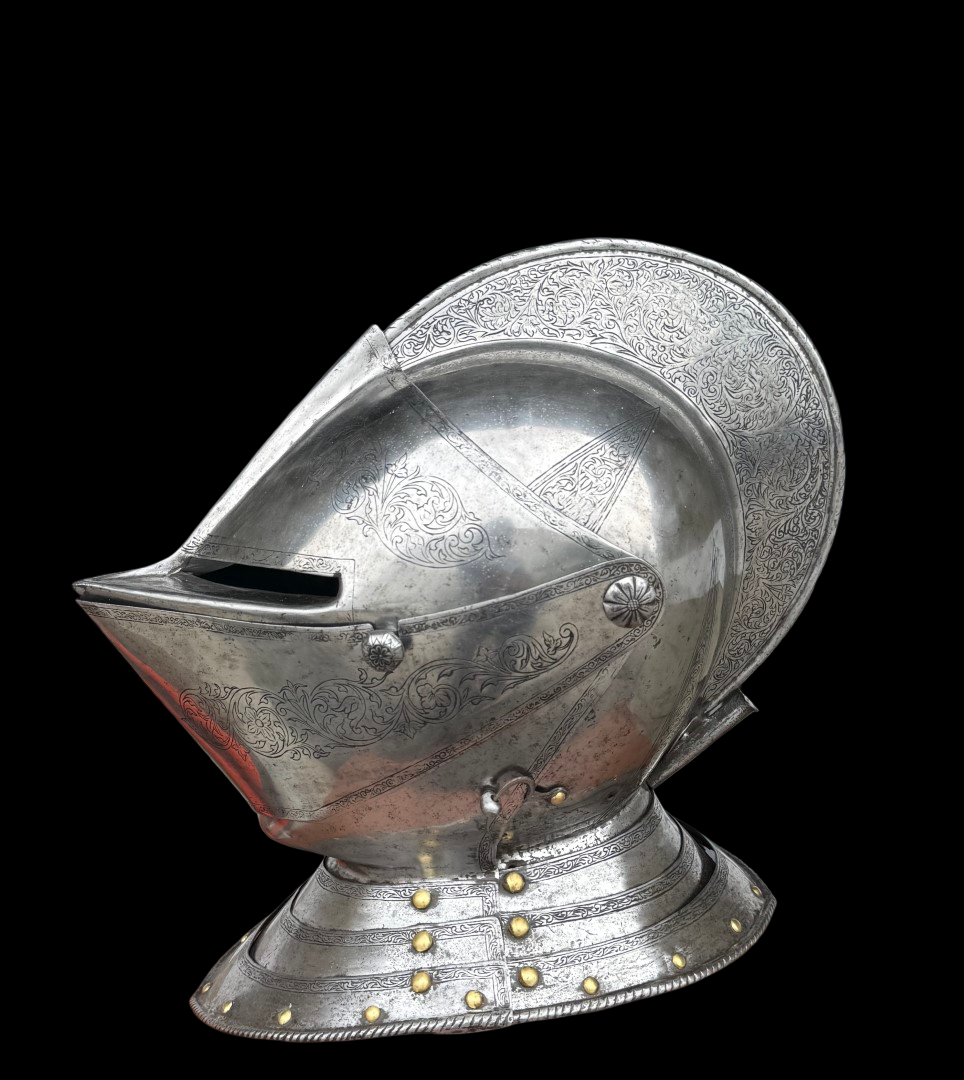 Introduction: This close helm is as original as the day it was made and is in superb museum condition, which puts it in a unique category. Even the gorget lames are original. The attention to detail is...