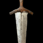 The basilard was probably the most used dagger circa 1350 in Western and Central Europe. The basilard was believed to have originated in South Germany or North Italy in the late 1200s; this appears in many older publications. However, a discovery at the Datini archives in Prato, Italy, dated 1375 by Claude Blair of the Victoria and Albert Museum, indicates the dagger’s origin is Basel, Switzerland, hence the name Basilard.