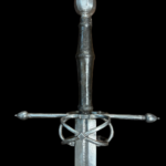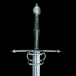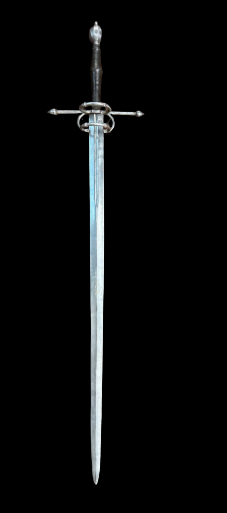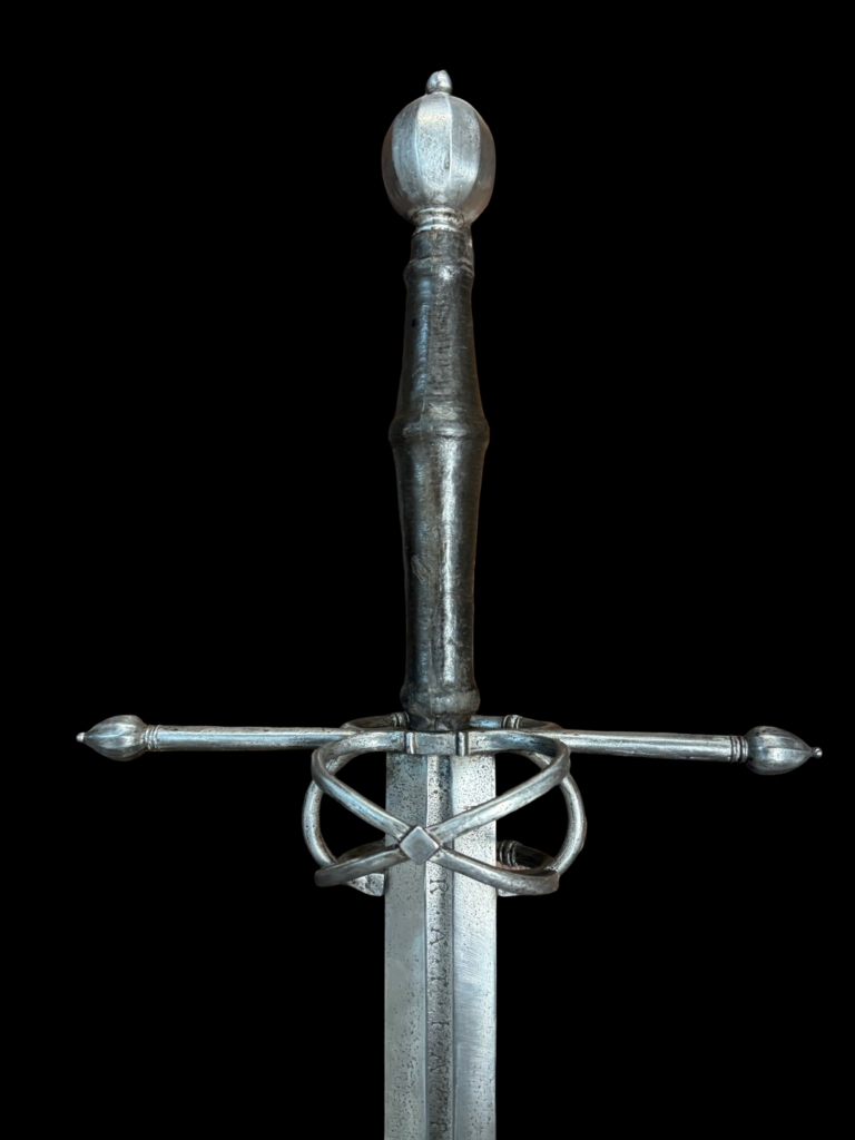 Introduction: This is the fighting sword typology referred to by Sir John Smithe in “Instructions, Observations and Militarie” composed in 1591, published 1595, page 186. This officer’s grade two-hand sword is as original as the day it was made! They just don’t come any nicer. This is the type of sword that collectors dream of owning—a great addition to any collection or museum.